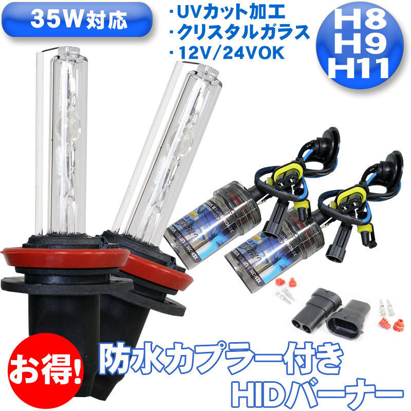 - HIDバーナー 35W H11/H8/H9 10000K 防水カプラー付 12V/24V 交換用左右セット UVカット加工 石英ガラス ヘッドライト/フォグランプ