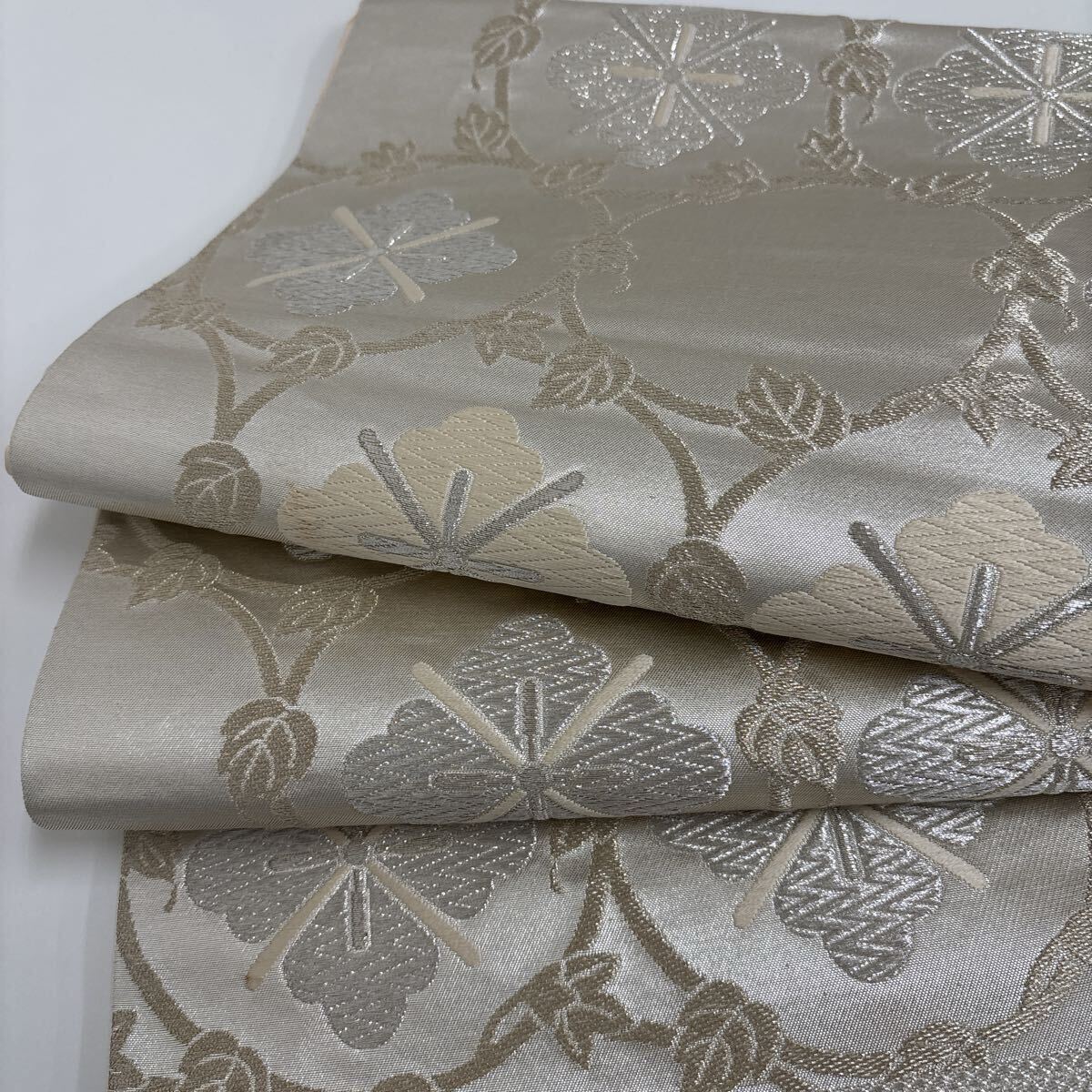 - 袋帯 銀彩 美しい花唐織 上品な加工 正絹 W-4591