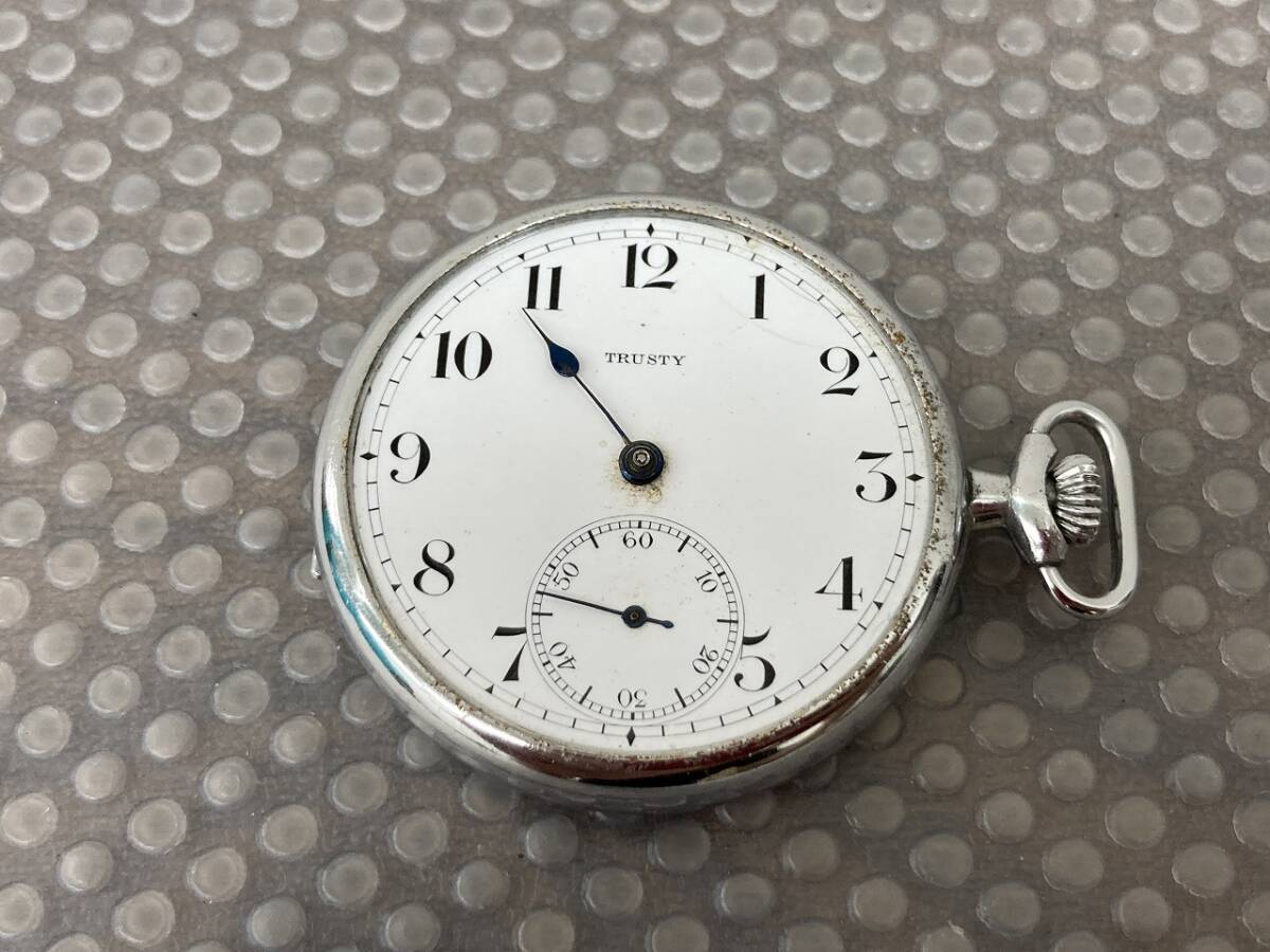- ★20310-m トラスティ/TRUSTY スモセコ 懐中時計 犬印 手巻き シルバー色 アンティーク★