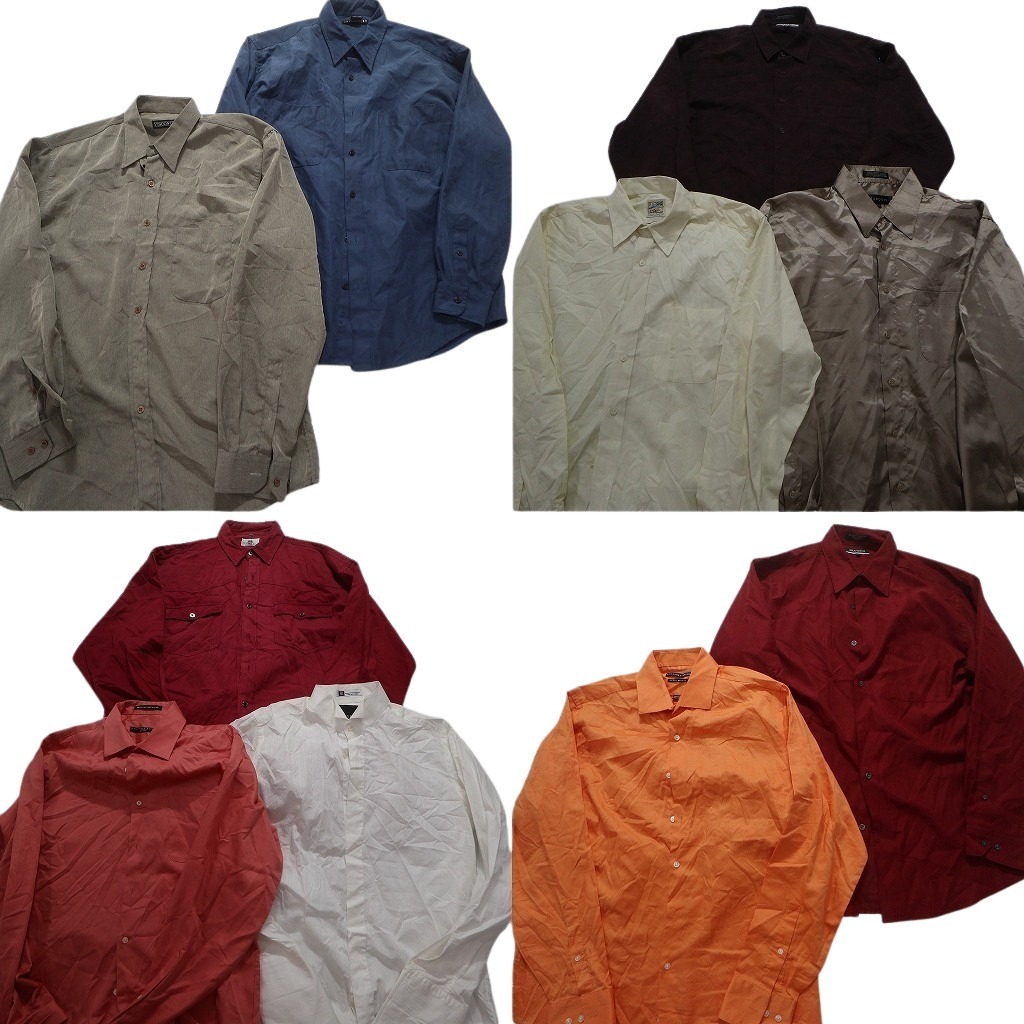 > 古着卸 まとめ売り 無地 長袖シャツ 10枚セット (メンズ L ) ダブルフラップ ラウンドカット ブラック 中古 古着 NC1860