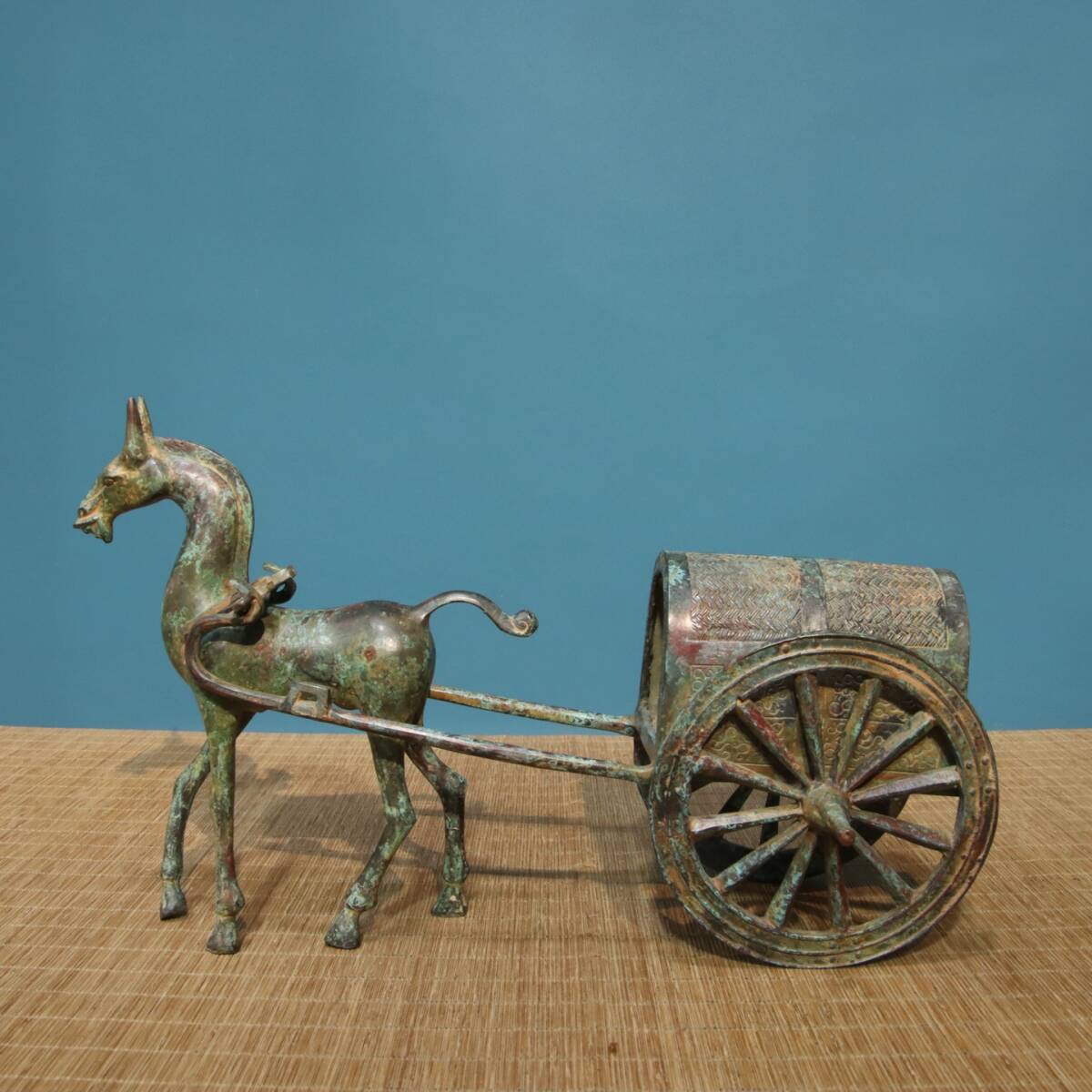 - ▽鴻▽ 青銅製 馬拉車 青銅器 置物 賞物 古賞物 古董品 時代物 稀少珍品 中国古玩 中国古美術