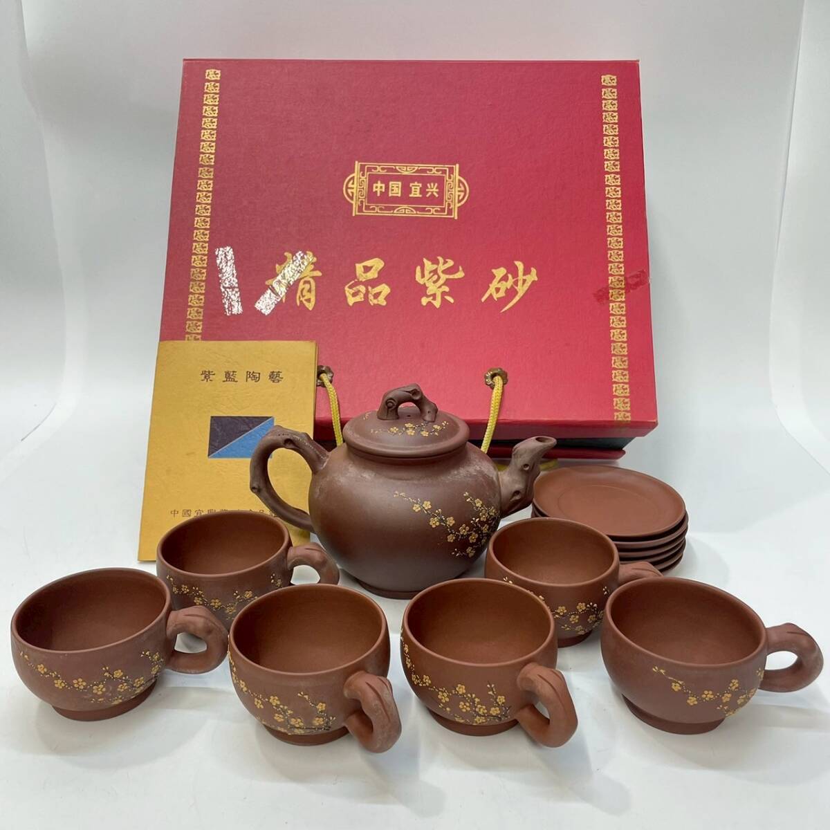 - ★ 1円~【コレクター放出品】 紫藍陶藝 精品紫砂 中国宜光 急須 カップ ソーサー 皿 紫砂 唐物 中国美術 芸術品 美術品 箱付属 K160803
