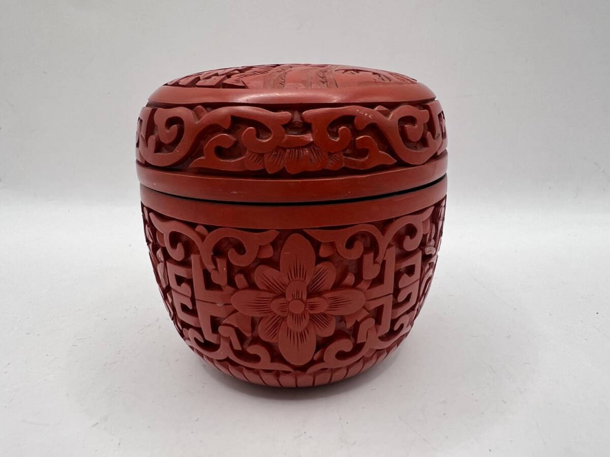 - B) 堆朱 彫漆 時代 文蓋物 茶入 茶道具 唐物骨董 古美術品 中国美術 7J0308