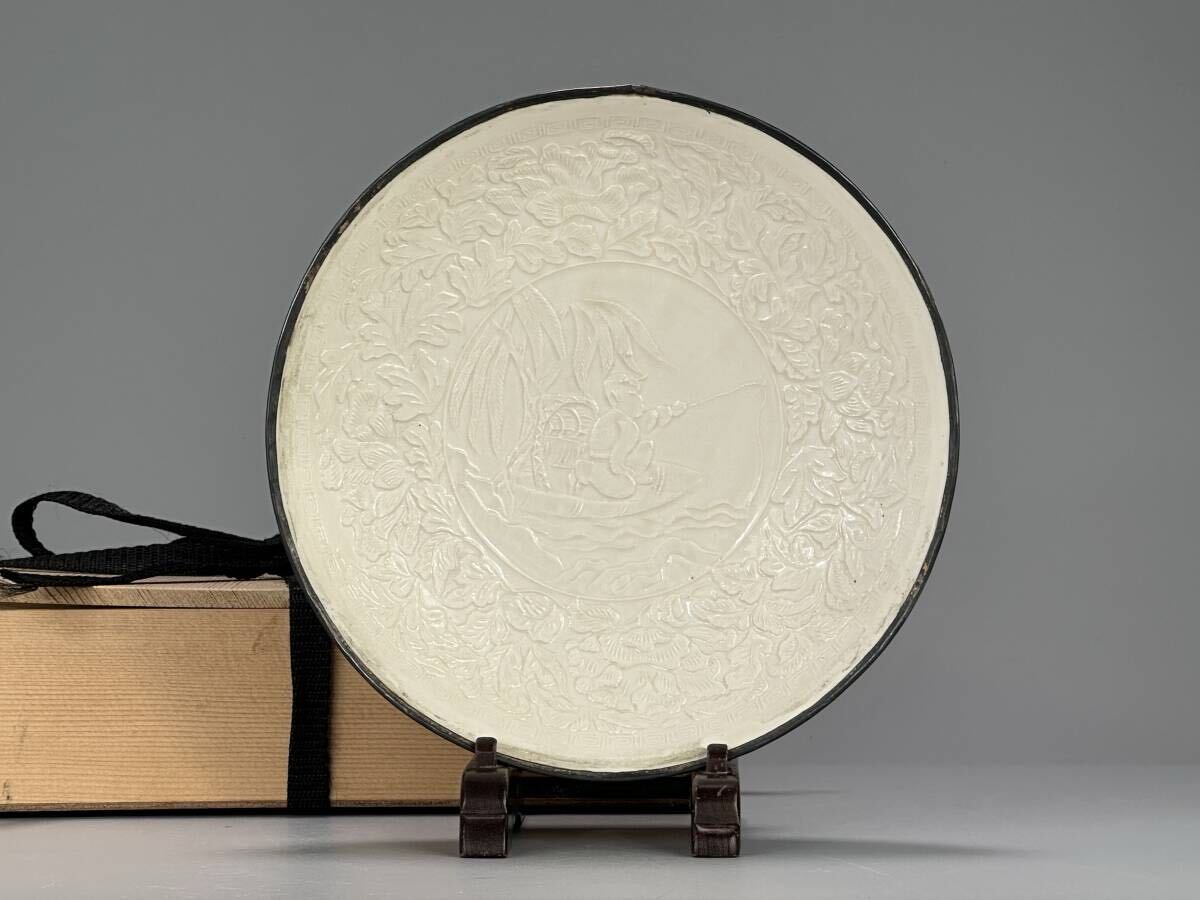 - 1UO1-12 中国美術 定窯 白磁 刻花卉漁師文盤 皿 時代 唐物