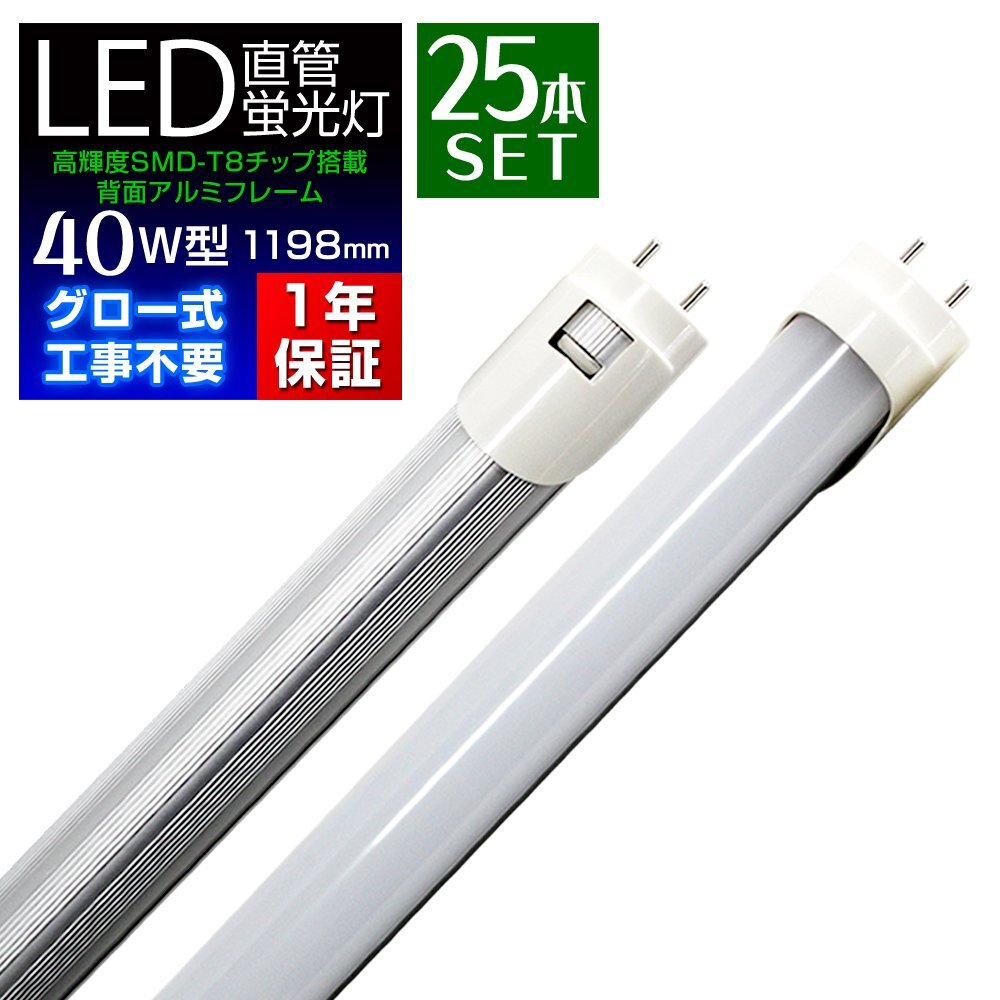 - 【25本セット】1年保証付き LED蛍光灯 昼光色 40W型 1198mm 約120cm 直管 LEDライト SMD グロー式 工事不要 照明 店舗 オフィス 省エネ