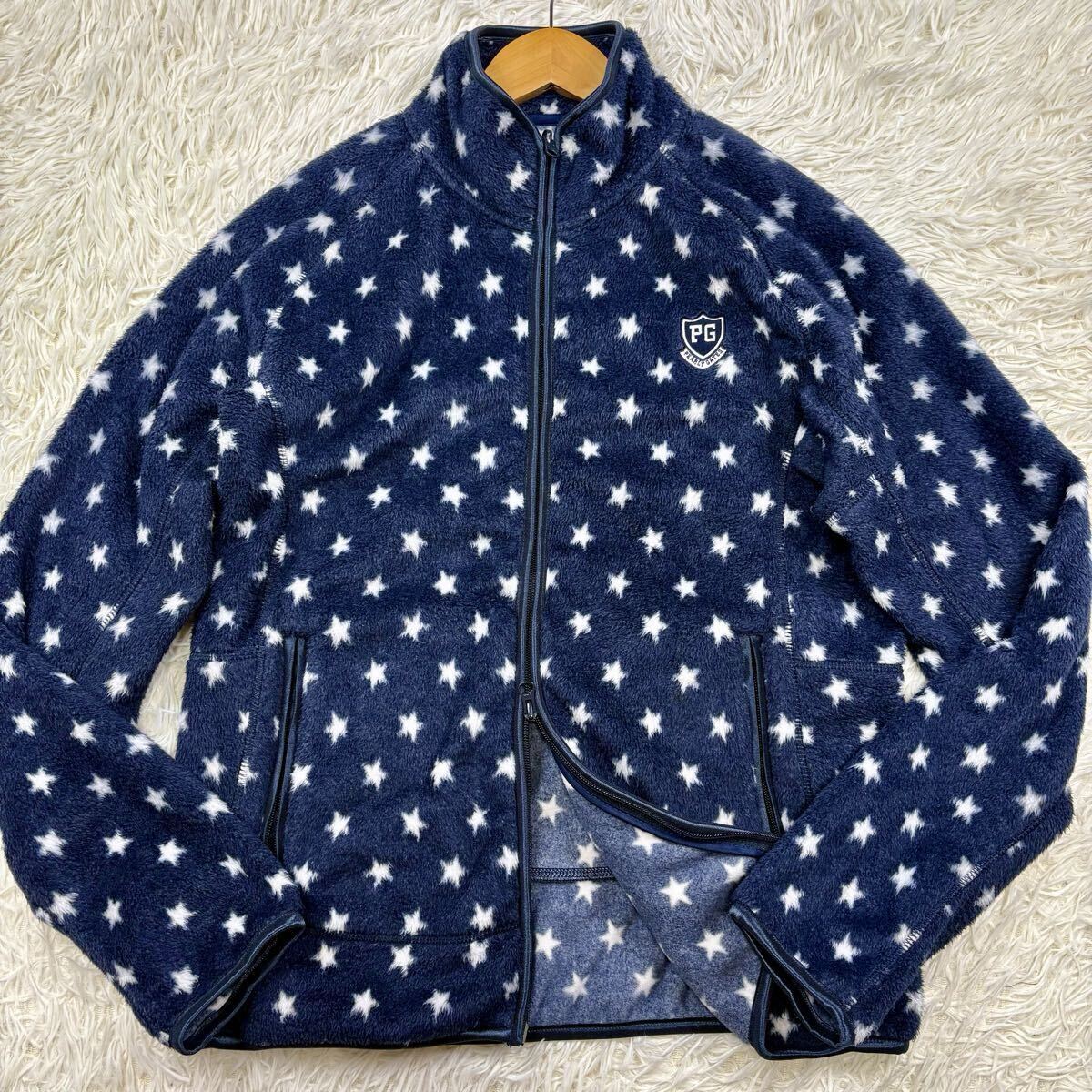 - ◎美品/希少XL!!◎パーリーゲイツ PEARLY GATES 星柄 スター フリース ジャケット ブルゾン ダブルジップ ロゴ刺繍 ゴルフ エンブレム 6 LL