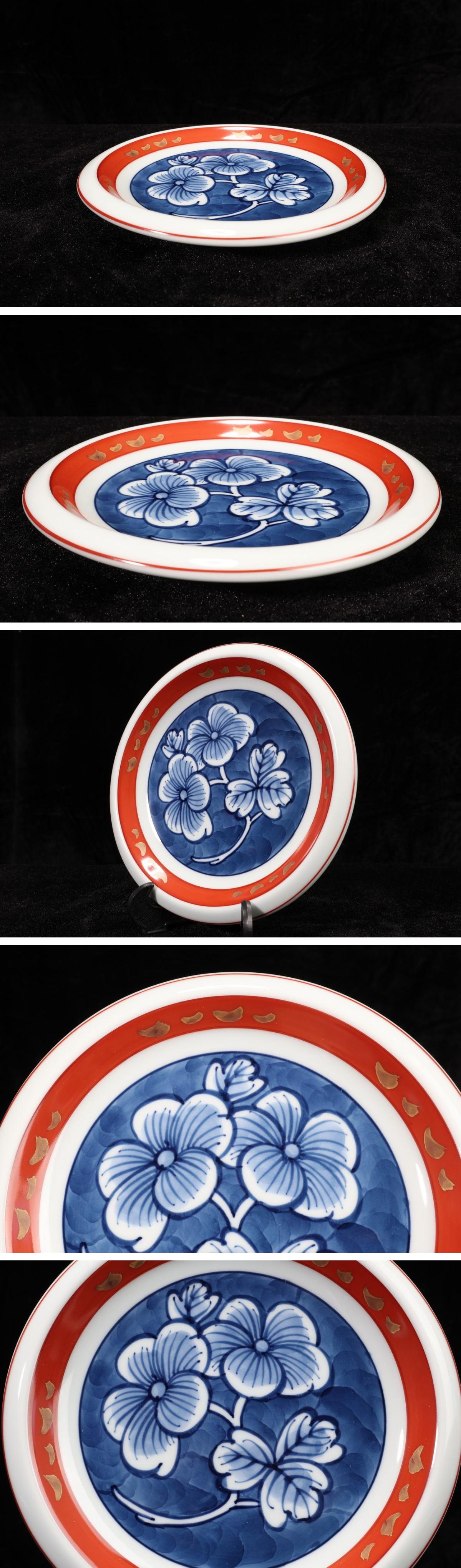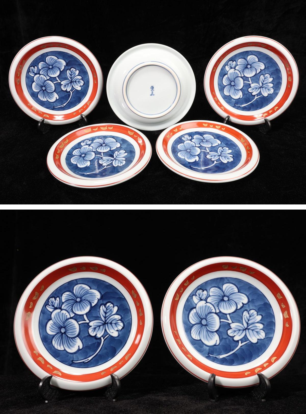 > 【珍品堂】1円から Y72-V03 有田焼 館林源右衛門窯 染錦 牡丹見込 皿 5客 径17cm 名窯 共箱 木箱 置台 骨董品 古美術 時代物