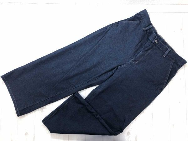 > ジーユー GU アメカジ 裏起毛 ストレッチ デニム パンツ ウォーム ワイド ジーンズ ボトムス レディース コットン混合 3XL 紺