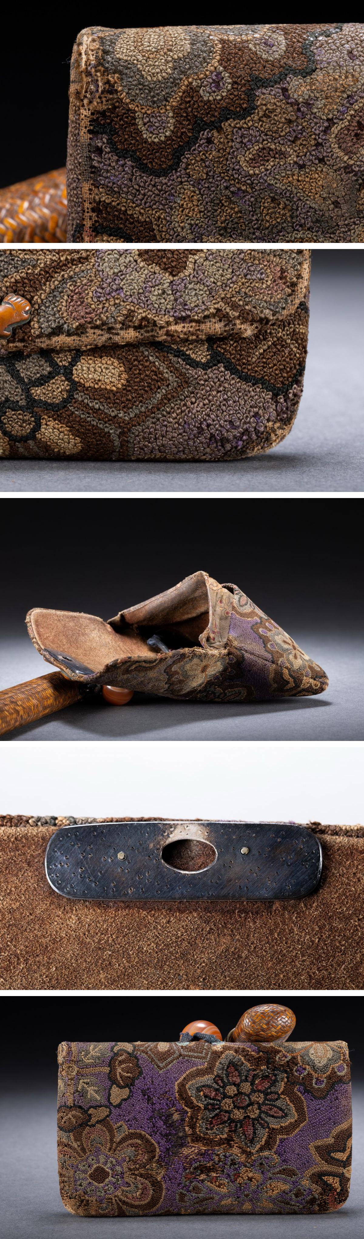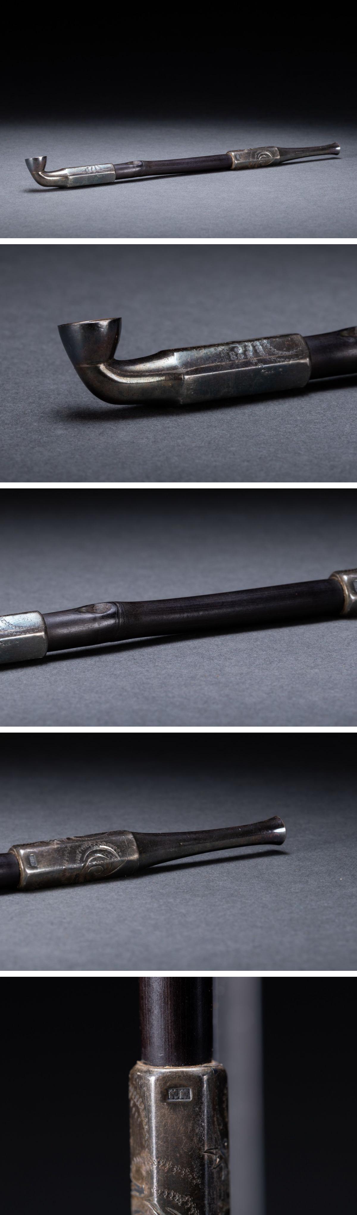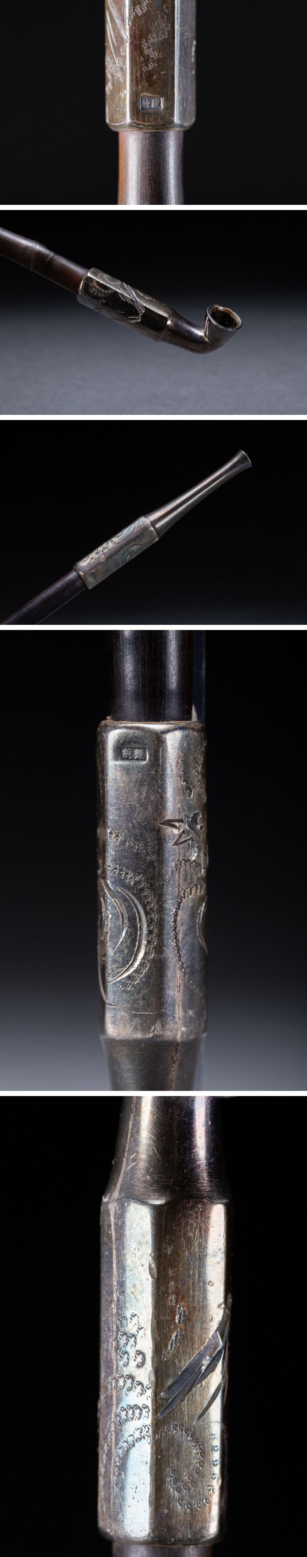 - 【雲錦】某有名オークション購入 江戸時代 竹編煙管筒・純銀富士文煙管・金唐革煙草入 古置物 古擺件 古美術 時代コレクションWK9-179L34