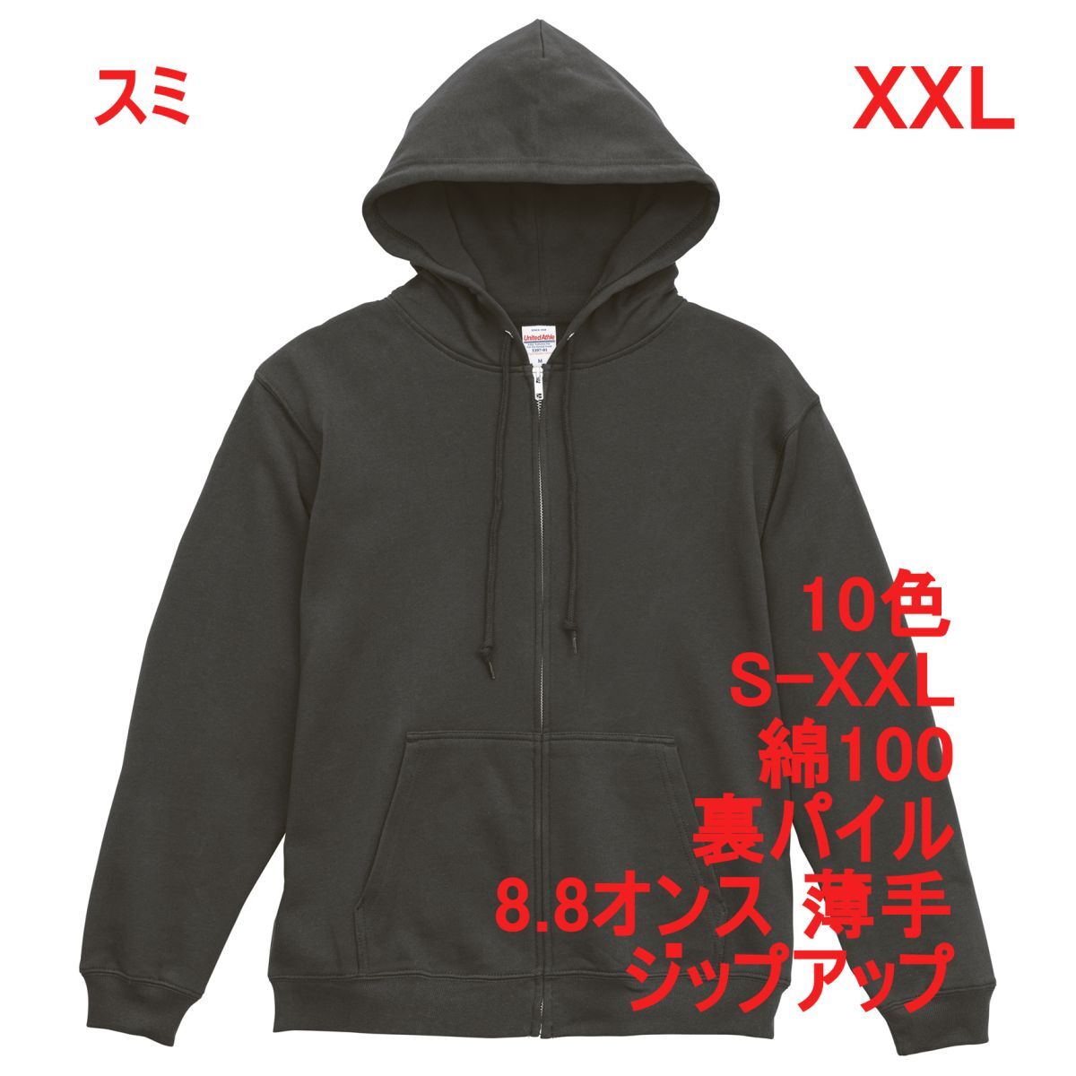 - パーカー XXL スミ 薄手 8.8オンス 裏パイル ジップアップ フルジップ 無地 定番 シンプル ベーシック スウェット A2146 3L 2XL 墨 539701