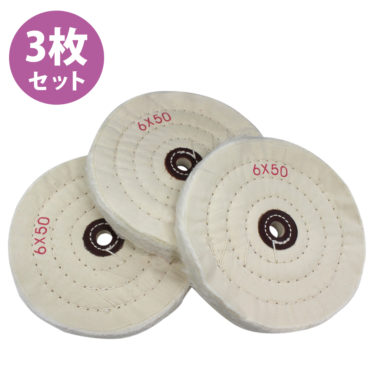 > 【3枚セット】仕上げ用 研磨 150mm 布バフ 両頭 コットン 布 バフ ホイール 金属研磨 緻密加工 艶出し ディスク グラインダー