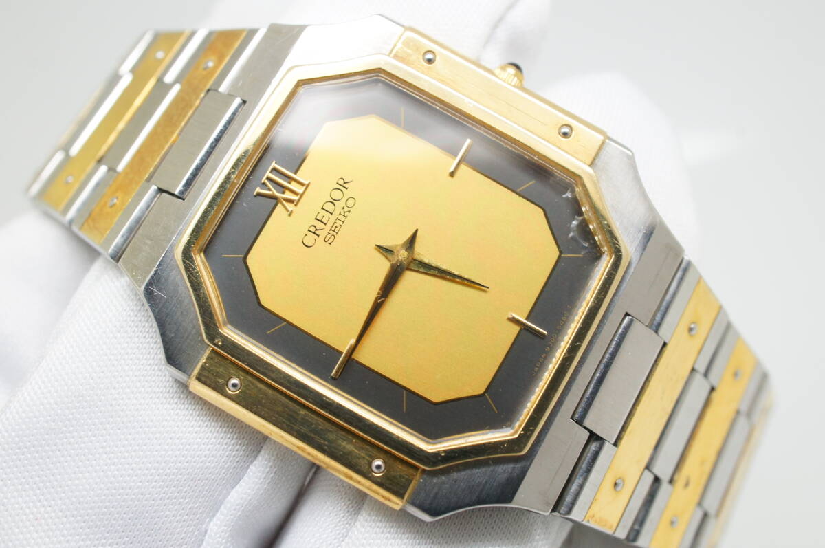 - J5●作動良好 SEIKO セイコー CREDOR クレドール 9300-5320 14Kベゼル SS×18K 金文字盤 メンズレディース腕時計 コンビ お洒落 クォーツ