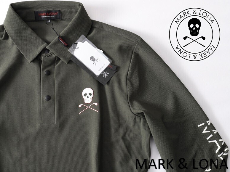 > ★韓国限定モデル★MARK&LONA マーク&ロナ★背面サークルスカルロゴ長袖ポロシャツ48★L【MTM-3A-AP71】カーキ茶緑【本物保証】日本未発売