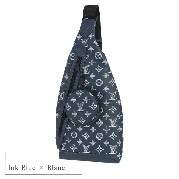 - ルイヴィトン ショルダーバッグ ボディバッグ M24751 デュオスリングバッグ モノグラムシャドウ インクブルー ホワイト 3714
