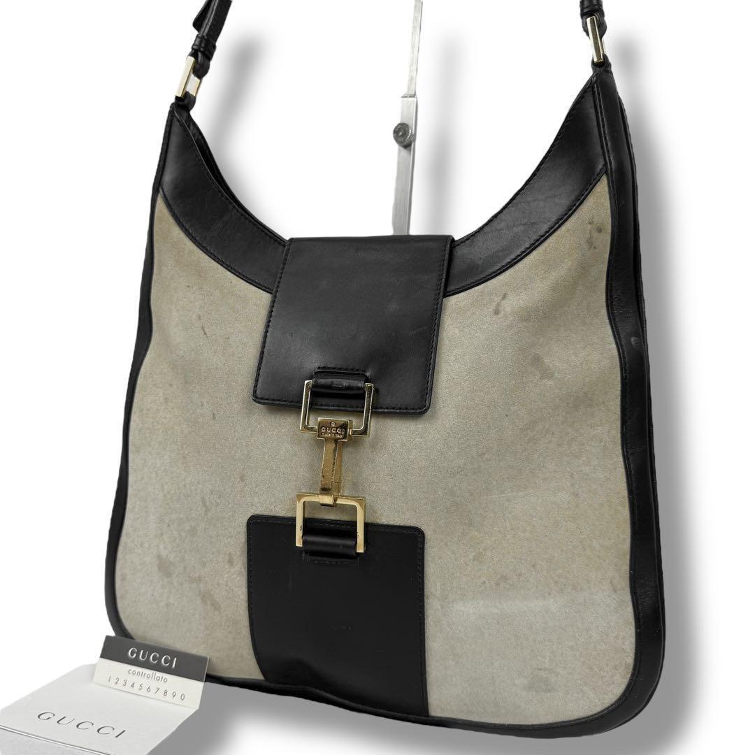 > GUCCI グッチ ジャッキーライン スエード レザー ワンショルダー セミショルダー バッグ 肩掛け カバン ベージュ系 グレー系 ブラック 黒