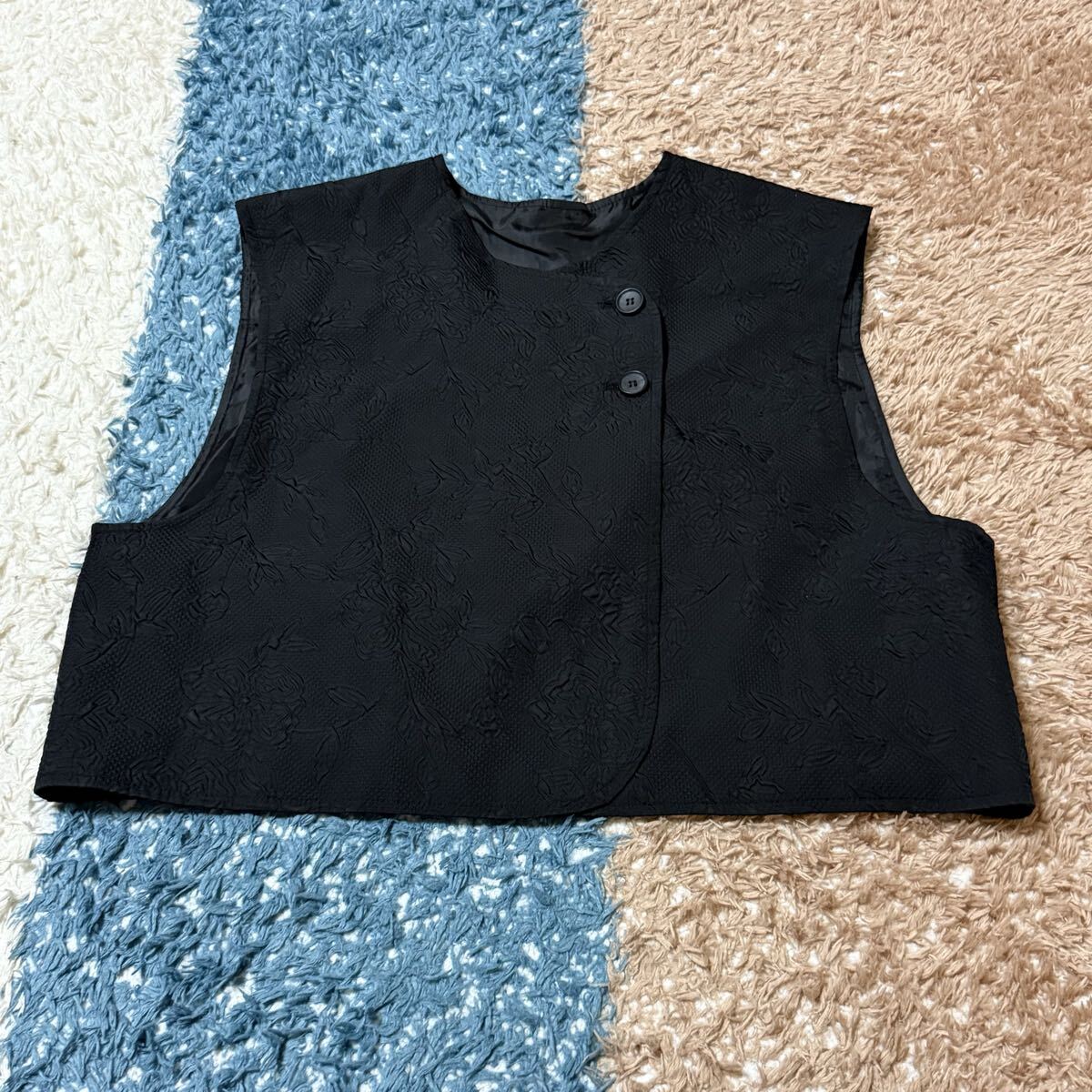 - ベスト ジャガード クルーネック 裏地付き 重ね着