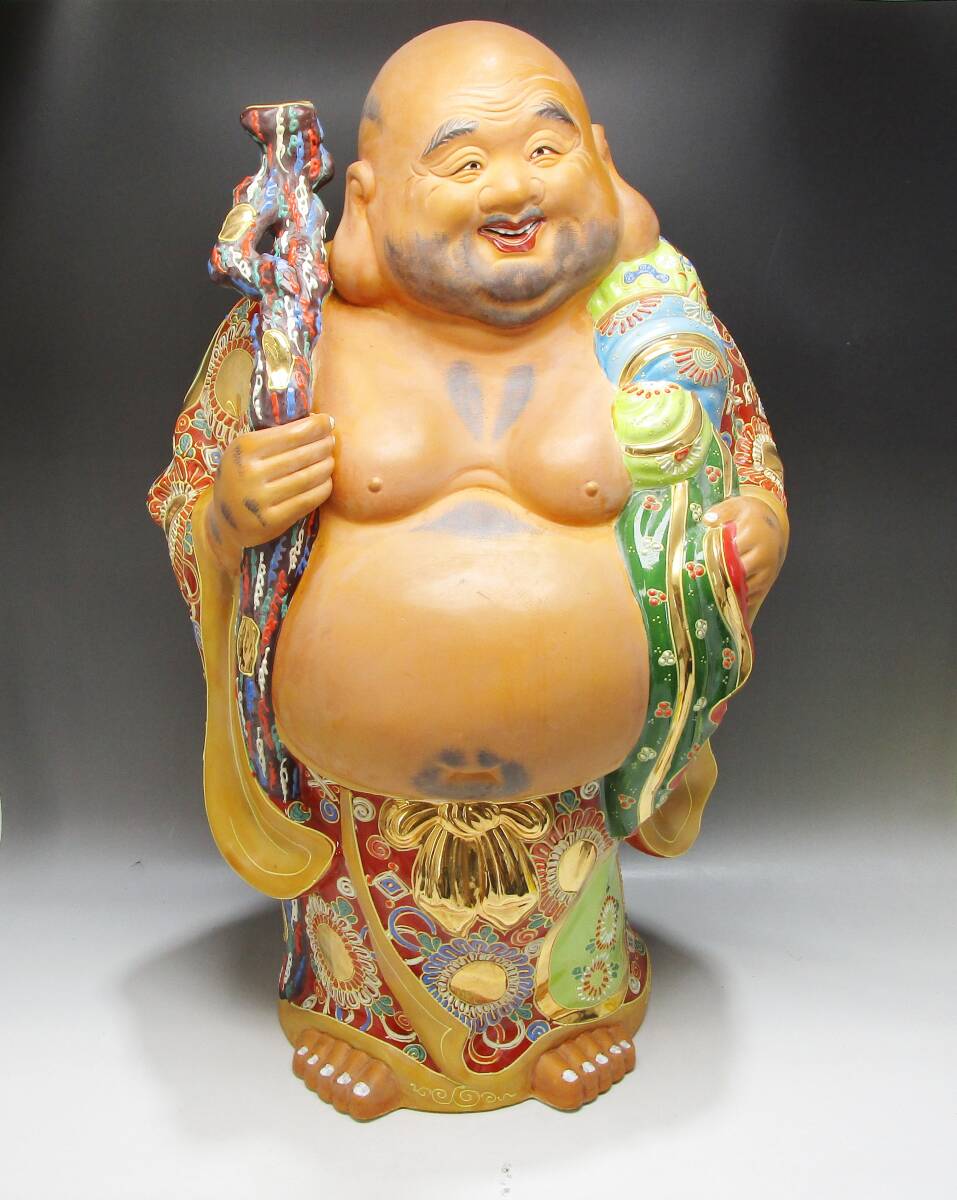 - 《ジャムルK》 KKA1004-6◆九谷焼 立布袋 置物 陶磁器 色絵金彩 縁起物 特大布袋像 高さ:約60cm 重さ:12kg