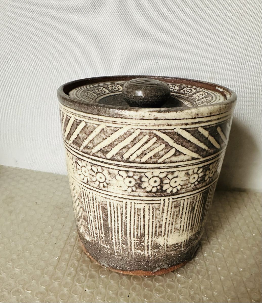- 陶器 壺 漬物入れ 小物入れ 保存容器 蓋付【保管品】