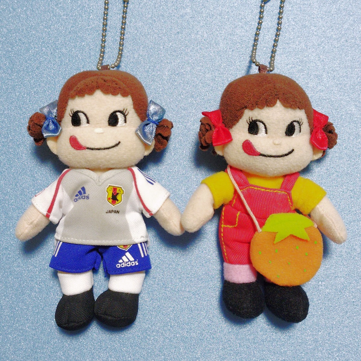 - 極美品 2点 不二家 ペコちゃん ぬいぐるみ マスコット サッカー 希少 限定 レア
