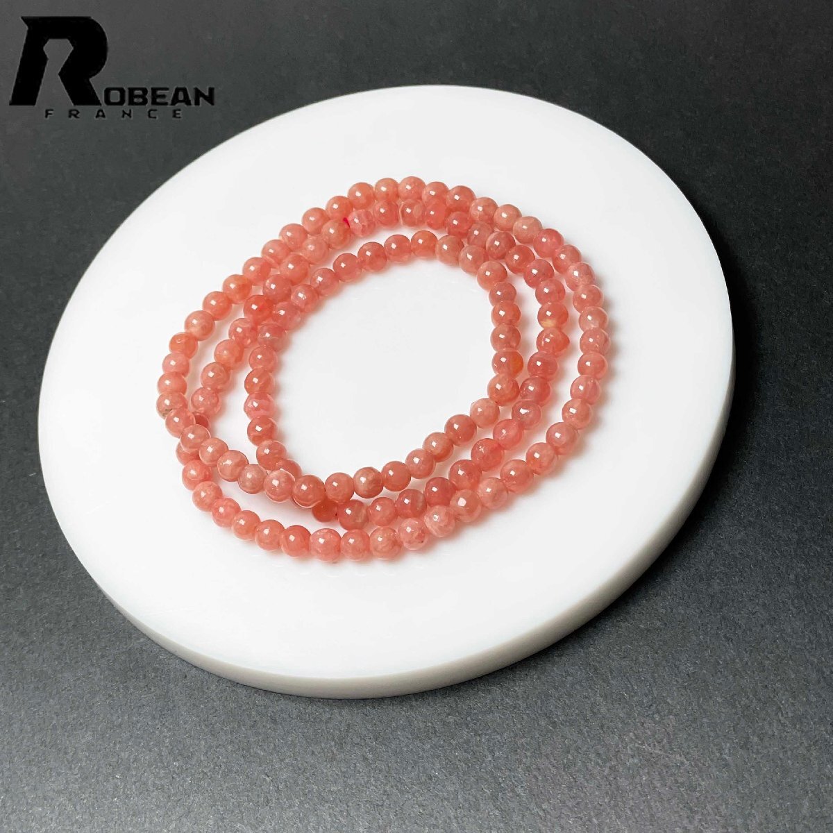 > 逸品 EU製 定価10万円★ROBEAN・インカローズ★3本巻きブレス パワーストーン 原石 天然石 高級 プレゼント バラ色 約4.8-5.1mm M0930583