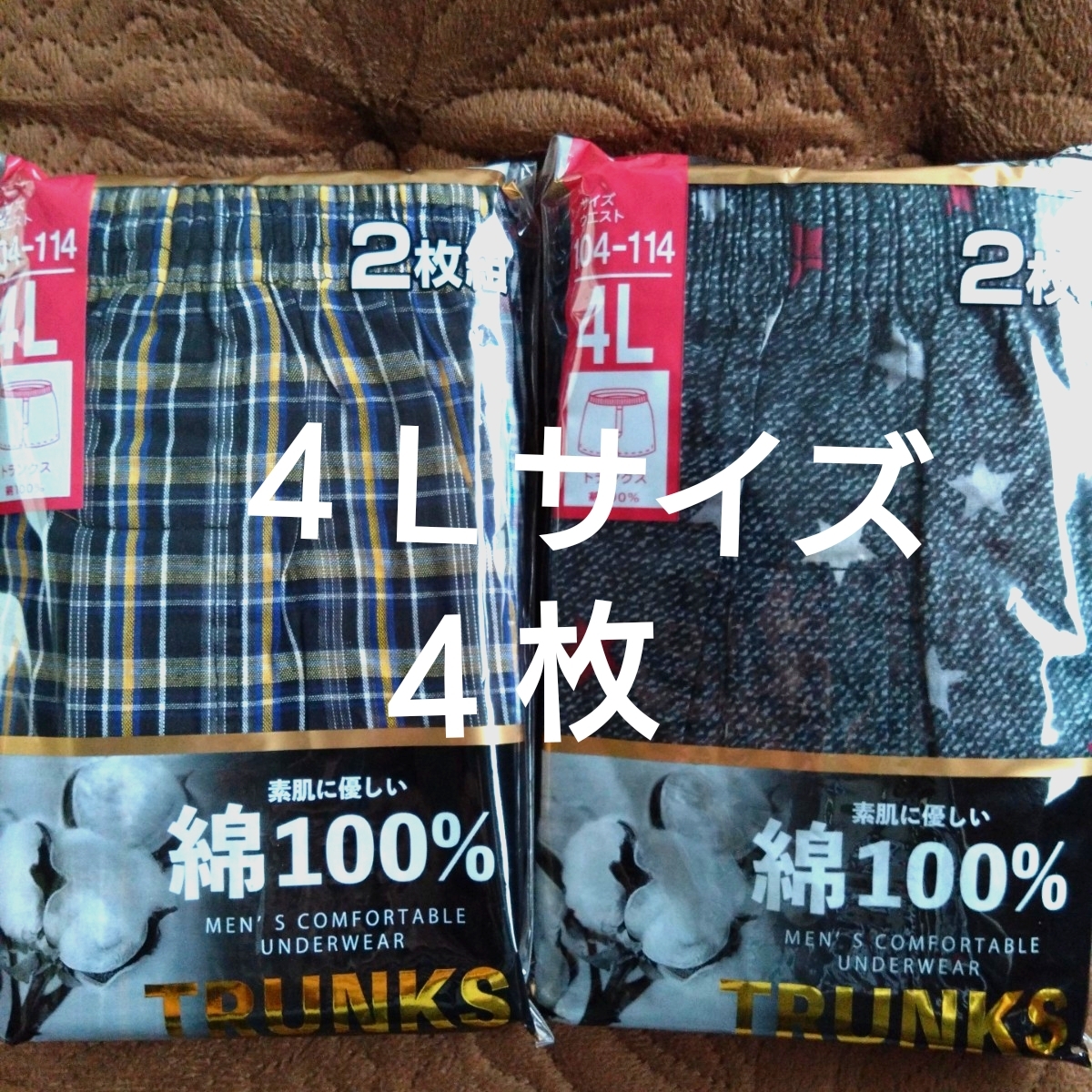 - ①メンズ 紳士 トランクス 4Lサイズ 2枚組2セット4枚 サイズ4L 綿100%