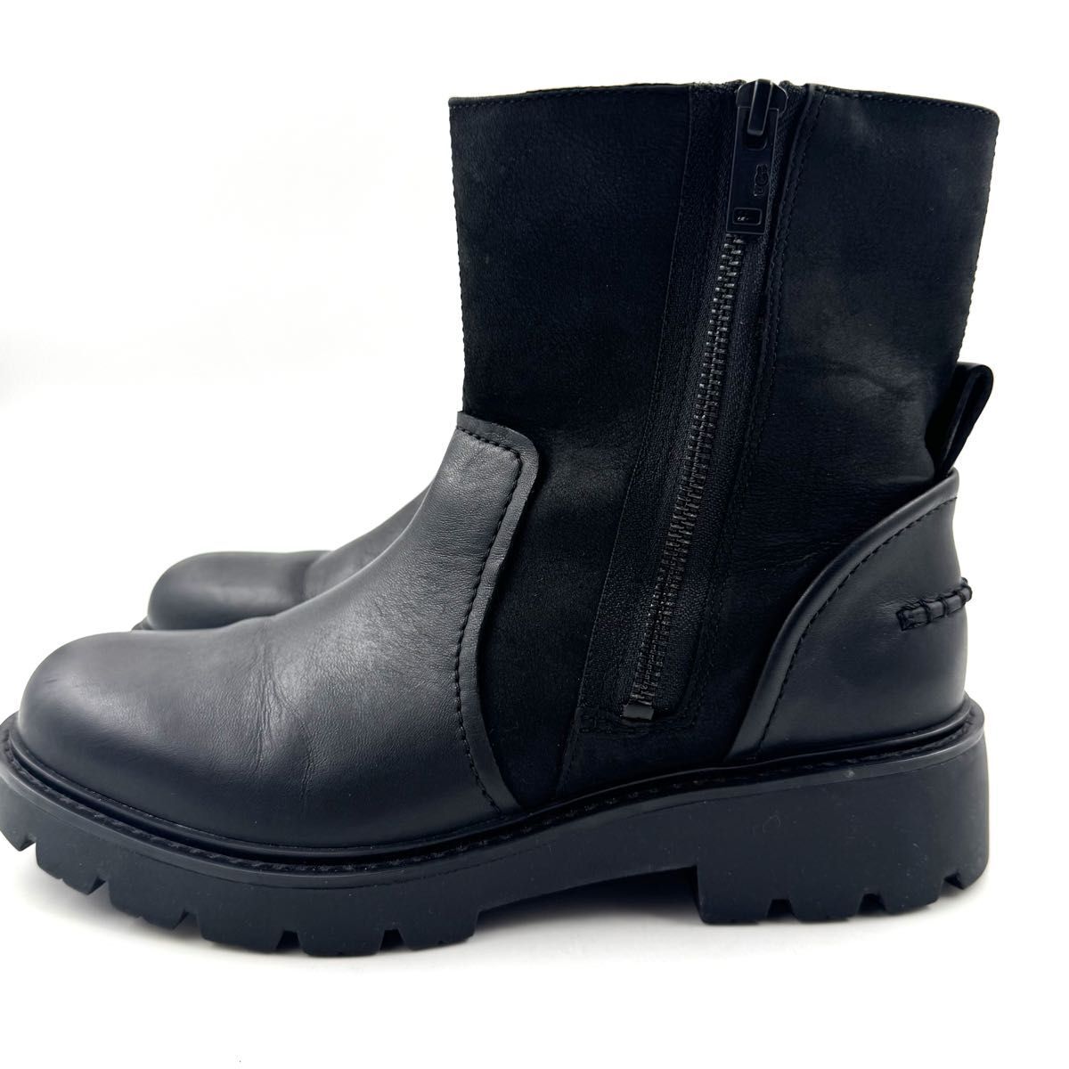- 【未使用級】UGG POLK アグ ポーク 本革 ブーツ ブラック サイドジップ 1103752 大きいサイズ US8 25cm