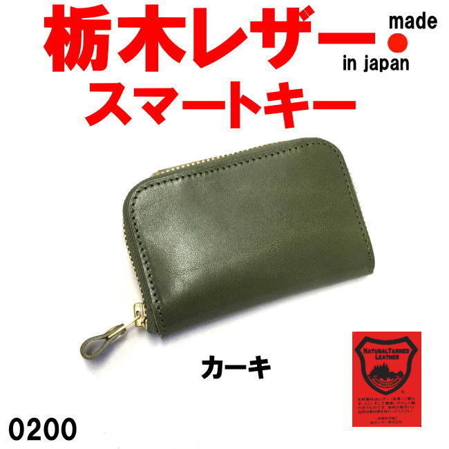 - カーキ 栃木レザー 0200 Lien ラウンド スマート キーケース 日本製 本革 メンズ レディース