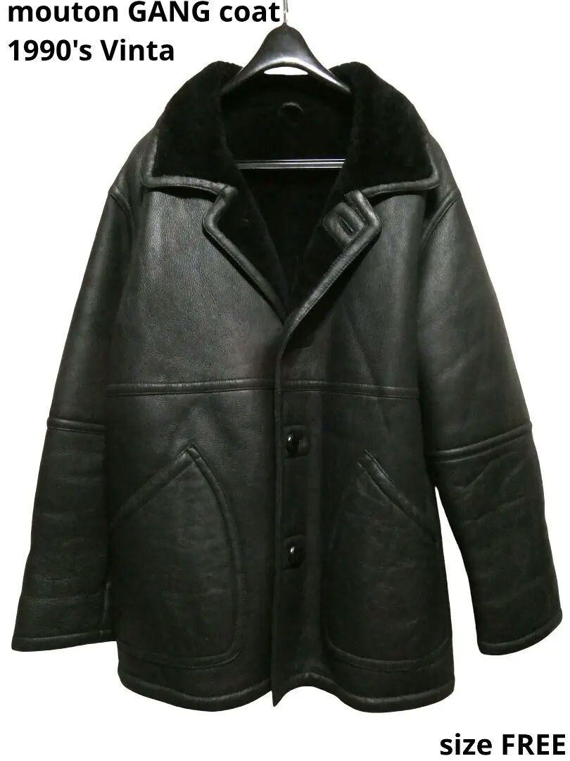 - 大人気カラーブラック!美品!オールリアルムートンギャングコートオールドヴィンテージ黒