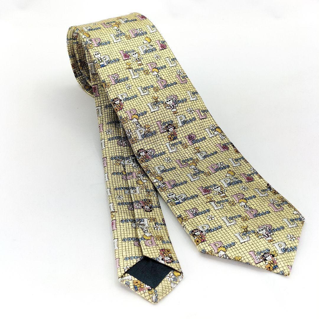 - 未使用 銀座田屋 スヌーピー ネクタイ 限定柄 黄色 絹100%