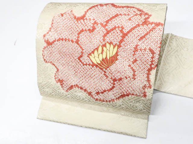 - 《京都一輝堂》【着物】九寸名古屋帯 太鼓柄 絞り 金駒刺繍 25b06-927