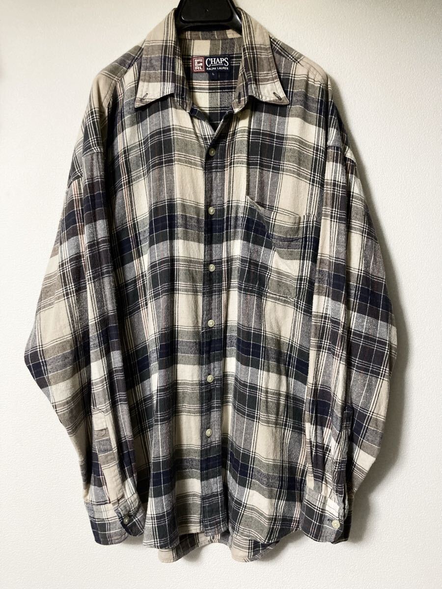 - Ralph Lauren オールド ライトネルシャツ L アイボリー系 オーバーサイズ チェック ジャケット BD chaps