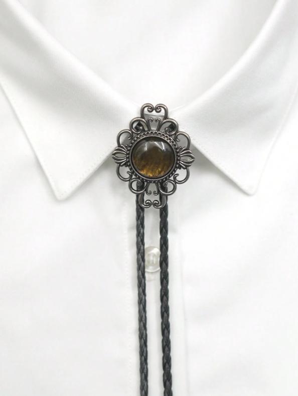 - 【ループタイ】レトロスタイリッシュタイガーアイ×シルバー ボロタイ
