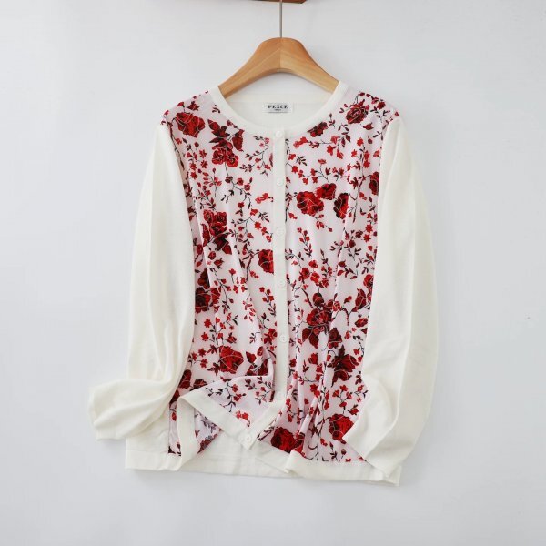 - wnm 綿50%テンセル50% カーディガン 羽織物 アウター チュニック トップス ニット セーター フリーサイズ ゆったり 前身頃花柄生地4