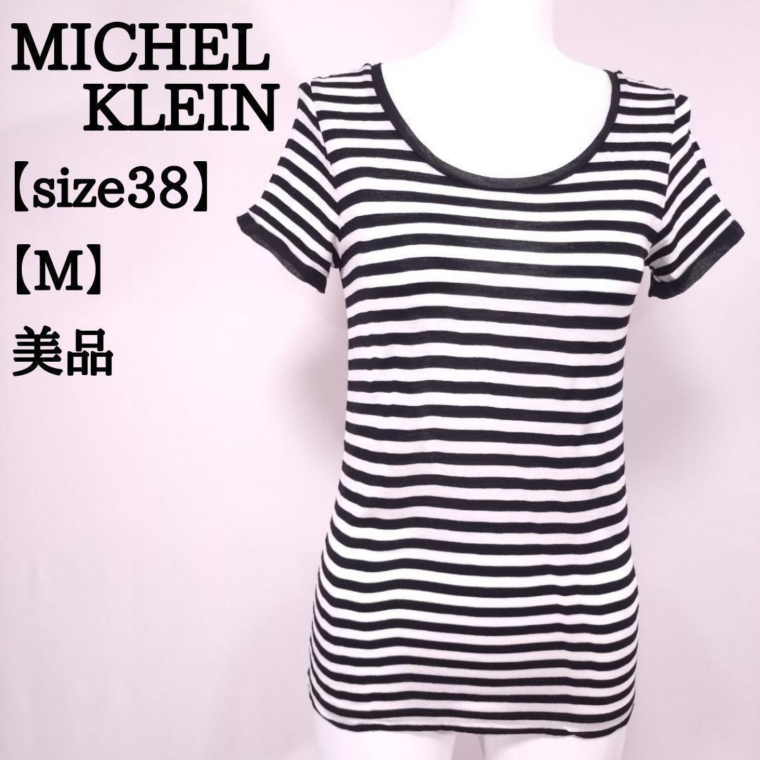 - 【美品】MICHEL KLEIN ミッシェルクラン ボーダー Tシャツ 半袖 M 異素材 レーヨン100% 182h7