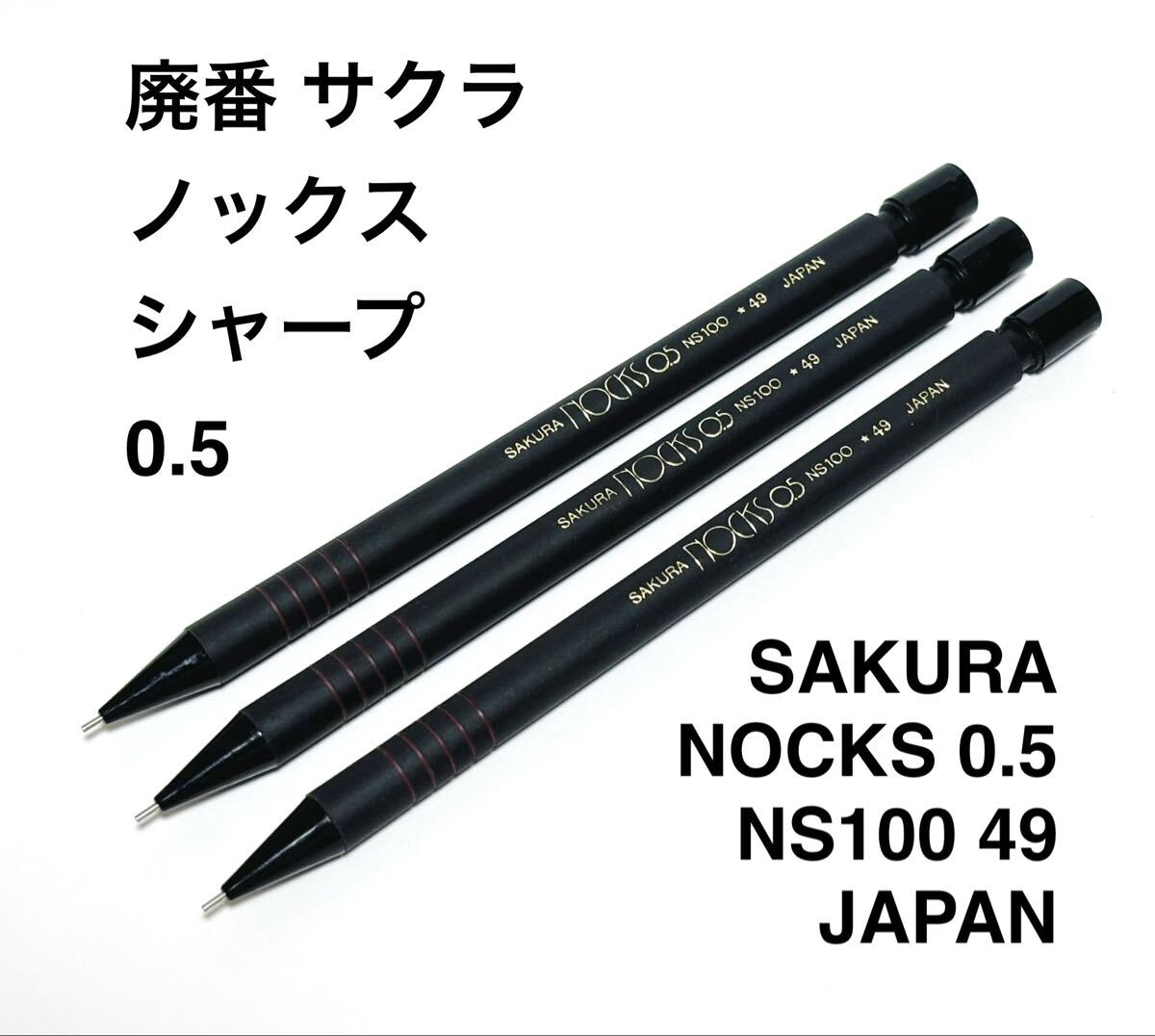 - 送料無料 廃番 サクラ ノックス 0.5 シャープペンシル ラバー軸 ブラック 3本 SAKURA NOCKS 0.5 NS100 49 ノック式 シャーペン 昭和レトロ