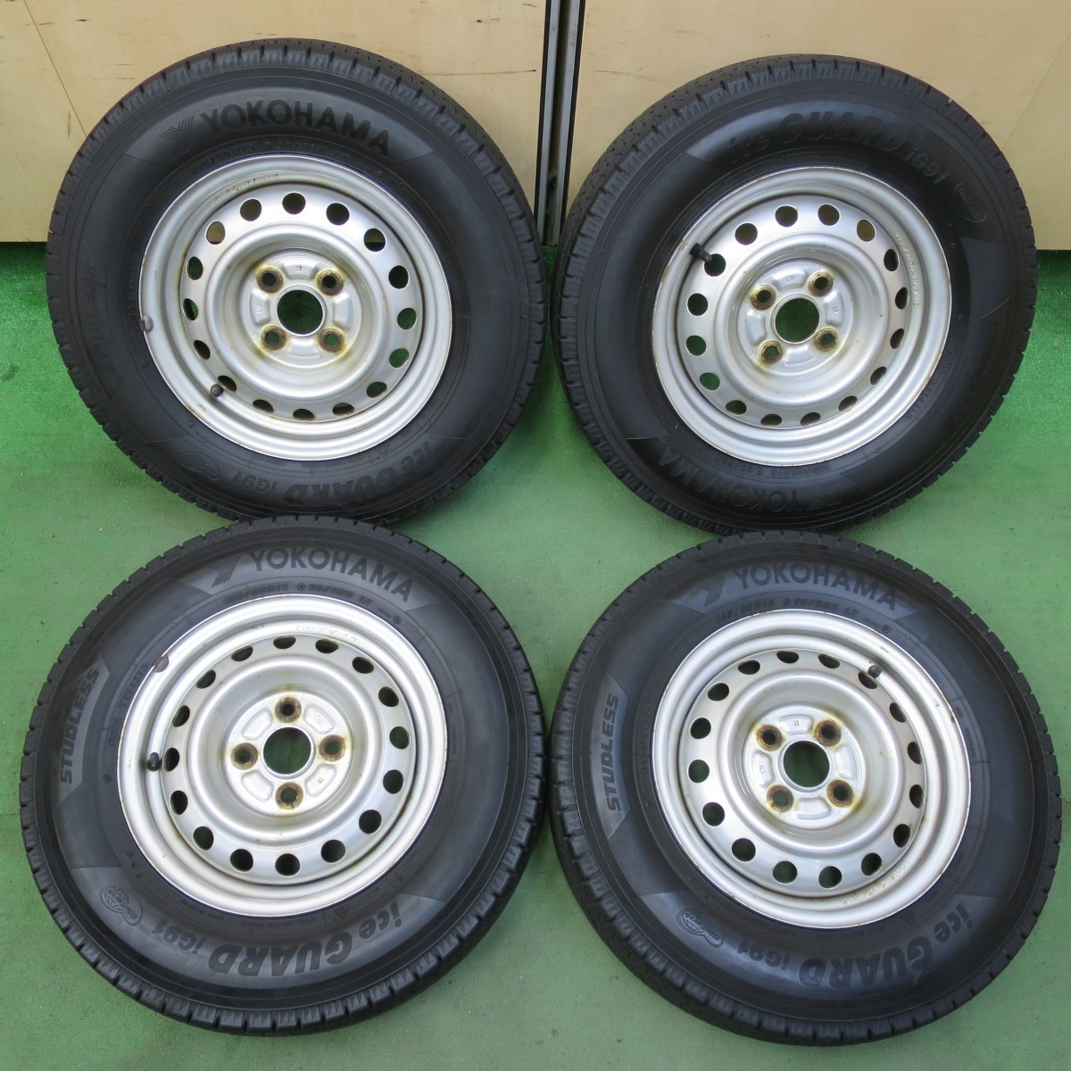 - バリ溝!9.5分★スタッドレス 165/80R13 90/88N ヨコハマ アイスガード iG91 スチール ホイール 13インチ PCD100/4H★5093009イス