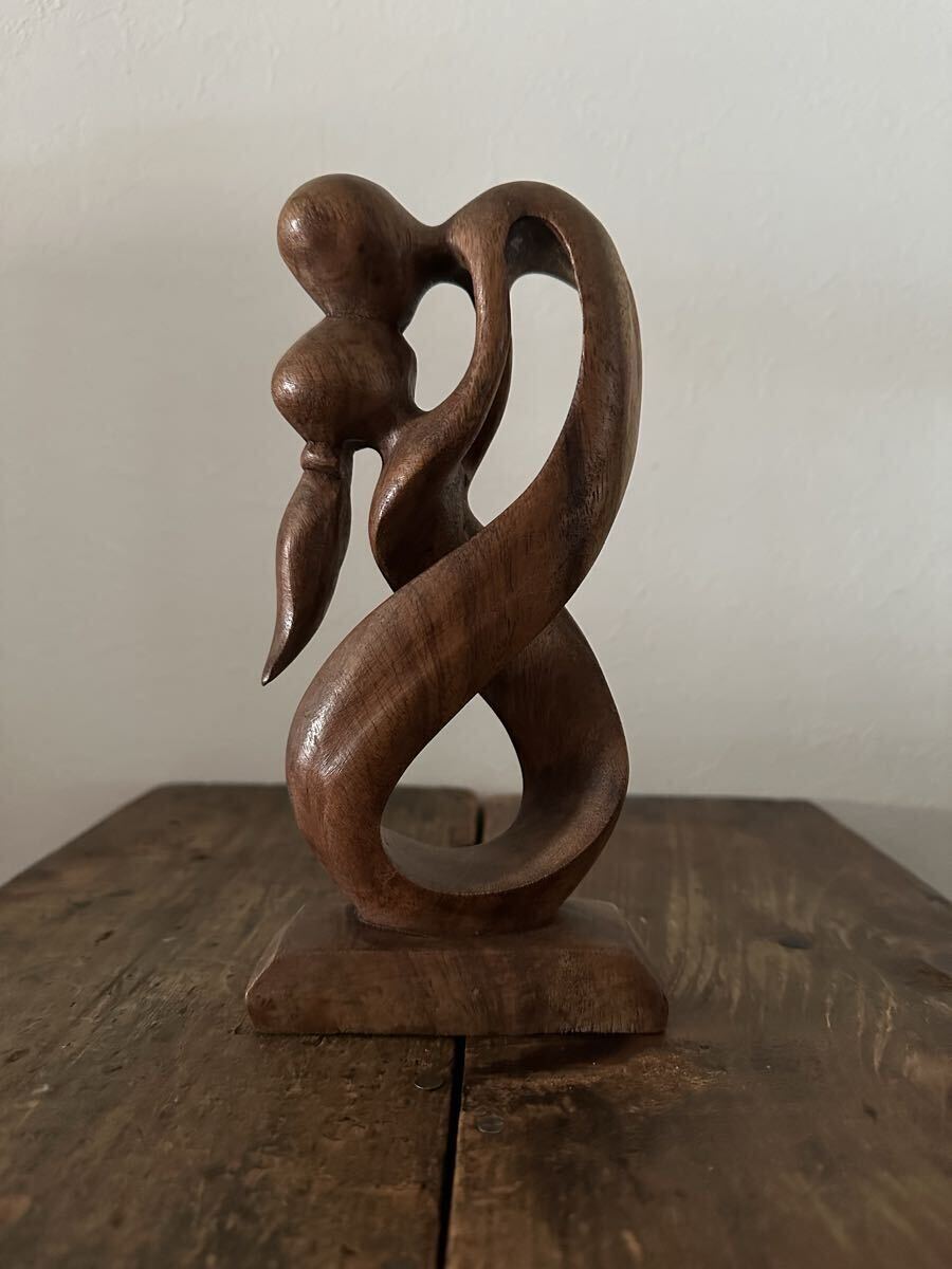 > フランス 蚤の市 ミッドセンチュリー アンティーク チーク材 無垢 彫刻 オブジェ 木彫 アート 抽象 モダン インテリア 置物 親子 家族 愛