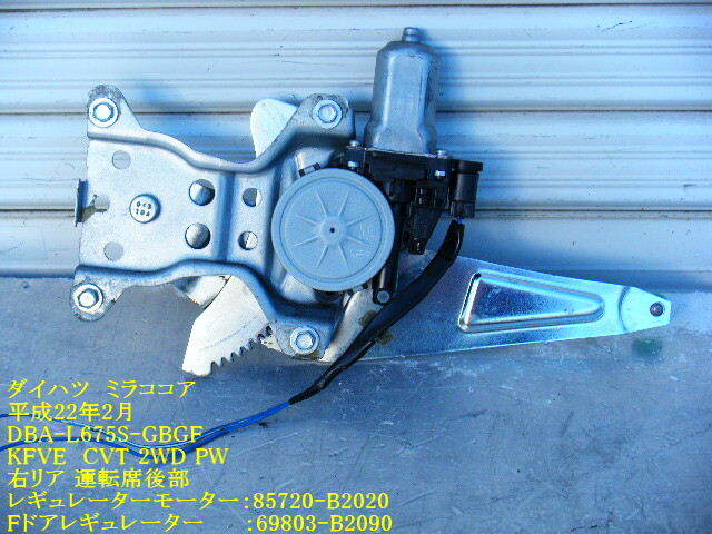 > ◆L675S ダイハツ ミラココア 右 リア レギュレーターモーター パワーウインドウモーター 運転席後部 85720-B2020 純正 [14223]