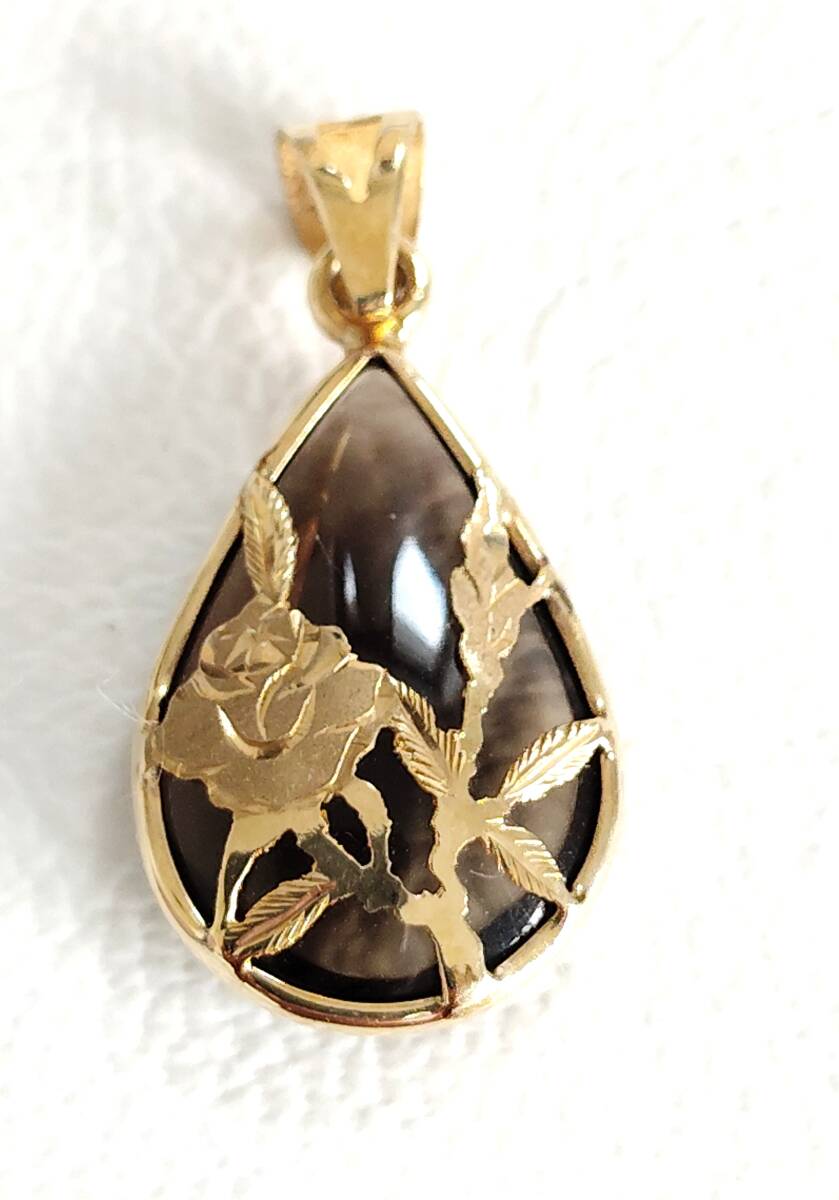 - ゴールドペンダント・スモーキークォーツトップ・象嵌ペンダント