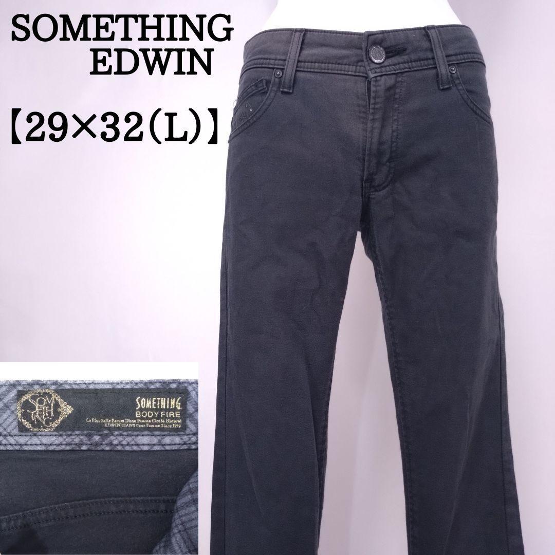 - SOMETHING EDWIN サムシング エドウィン ストレート パンツ ロング L 裏地チェック SW266 装飾つき 238h5