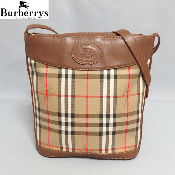 > ★Burberrys ノバチェック シャドーロゴ ヴィンテージ ショルダーバッグ レザー オールド バーバリーズ★