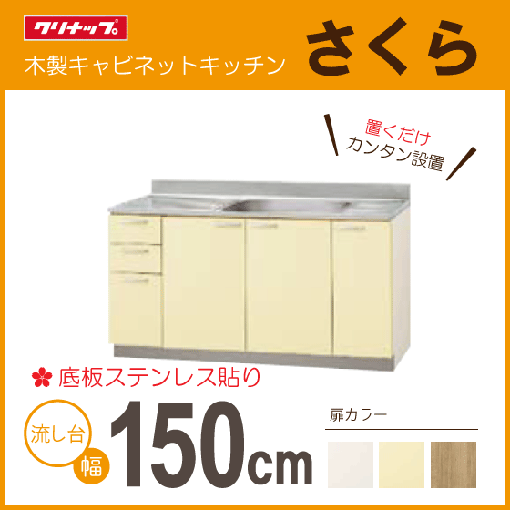 > 流し台 クリナップ さくら 150cm TAT-150ML TAY-150ML T4B-150ML TAT-150MR TAY-150MR T4B-150MR 1500mm★