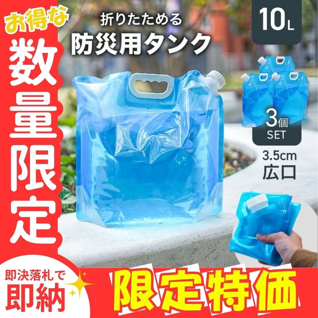 - 限定セール【10リットル×3個セット】ウォータータンク 折りたたみ 水 タンク 給水 給水袋 防災 災害 生活用水 アウトドア レジャー 備え