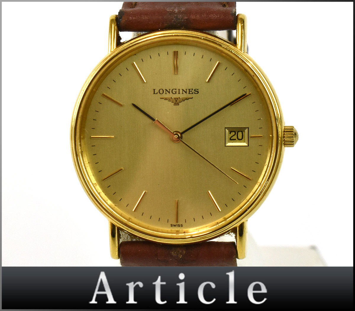 > 235460□動作確認済 LONGINES ロンジン プレザンス 腕時計 クォーツ デイト 3針 L4.720.2 GP レザー 革 メンズ レディース/ D