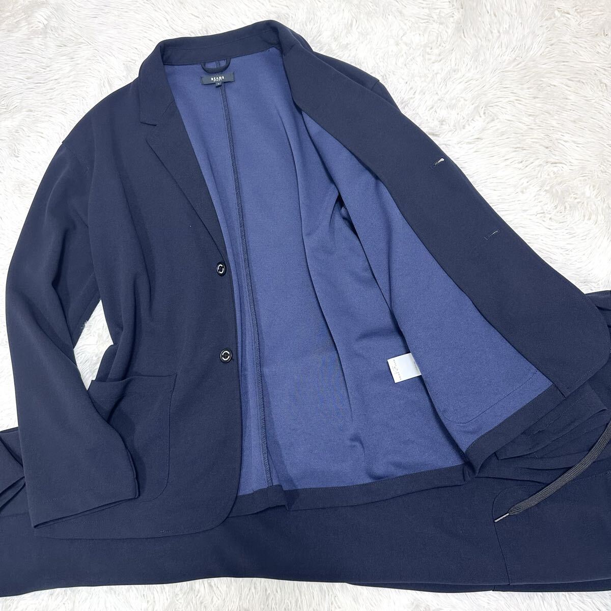 > BEAMS HEART【希少XL相当サイズ 洗える 高ストレッチ】ビームスハート トラベルスーツ イージーパンツ 紺 伸縮性 アンコン セットアップ