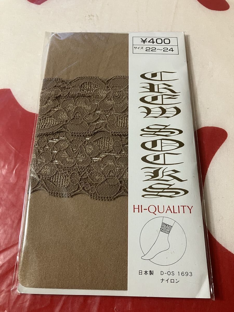 - エレガント lace クルー ソックス hi quality 日本製 22-24cm crew socks レース 靴下 ブラウン系