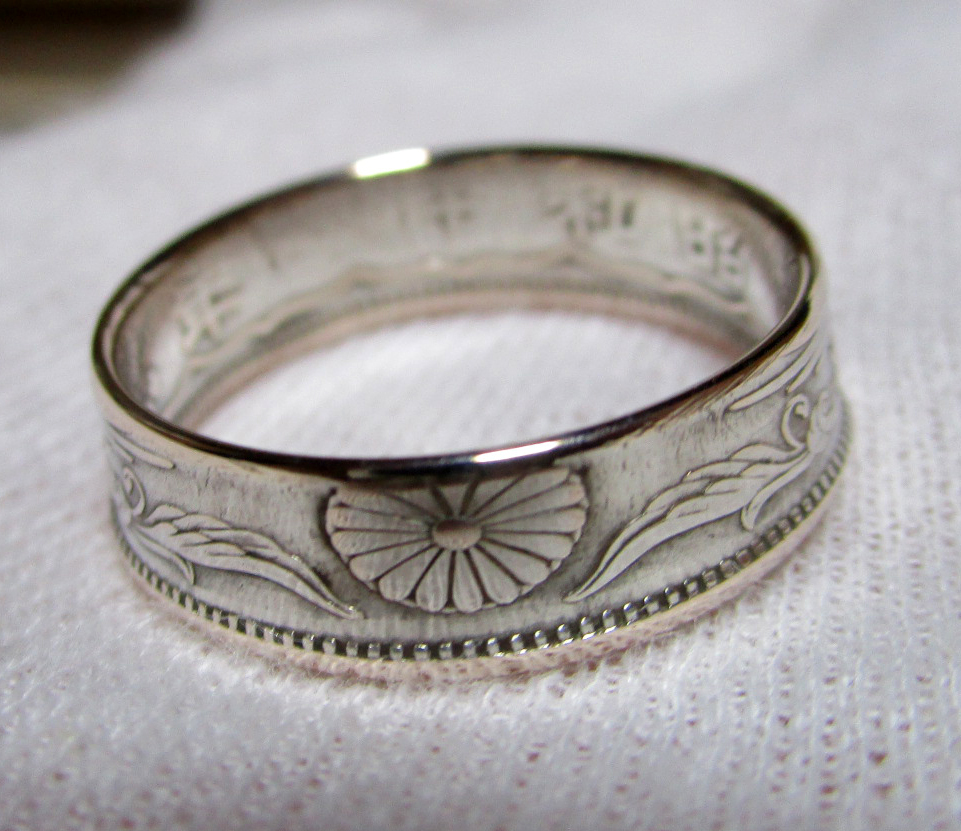 - 【s316】 コインリング☆小型50銭 銀貨☆ハンドメイド 17.5号 昭和十一年