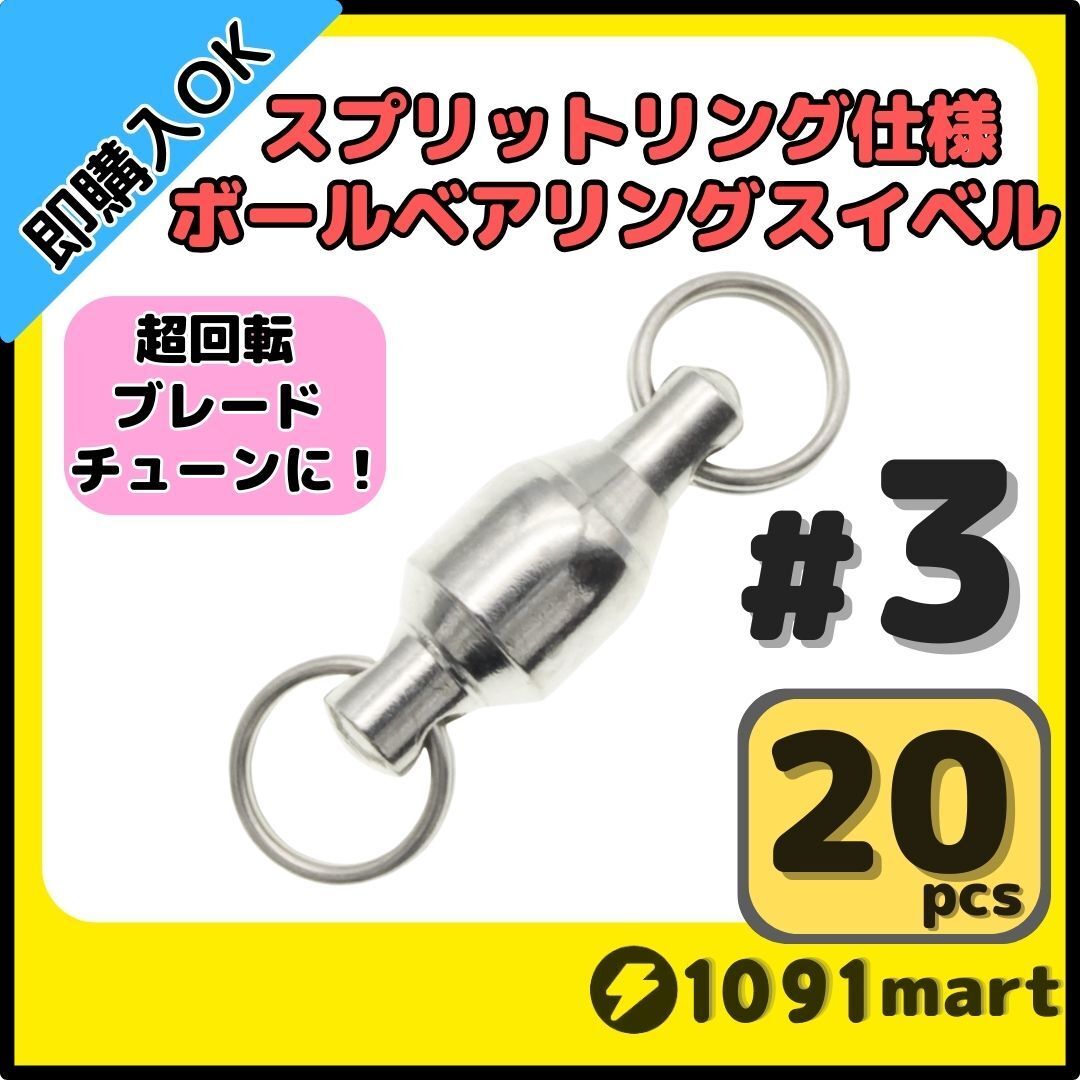 - 【送料150円】ボールベアリングスイベル スプリットリング仕様 #3 20個セット ジグスピナースピナーベイトスピンテールブレードチューンに