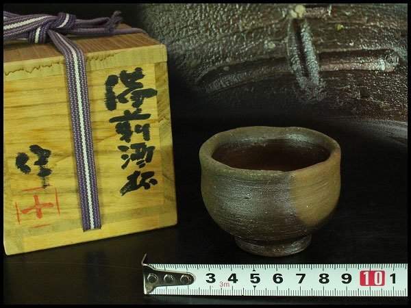 - 【金閣】備前 稲荷作 造 ぐい呑 酒器 共箱 保証 未使用 旧家蔵出 送料無料(A414)
