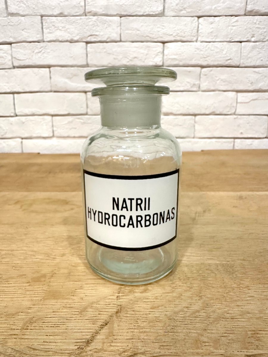 クリアガラスに、ブラックカラーでNATRII HYDOROCARBONASの文字がデザインされた商品です。